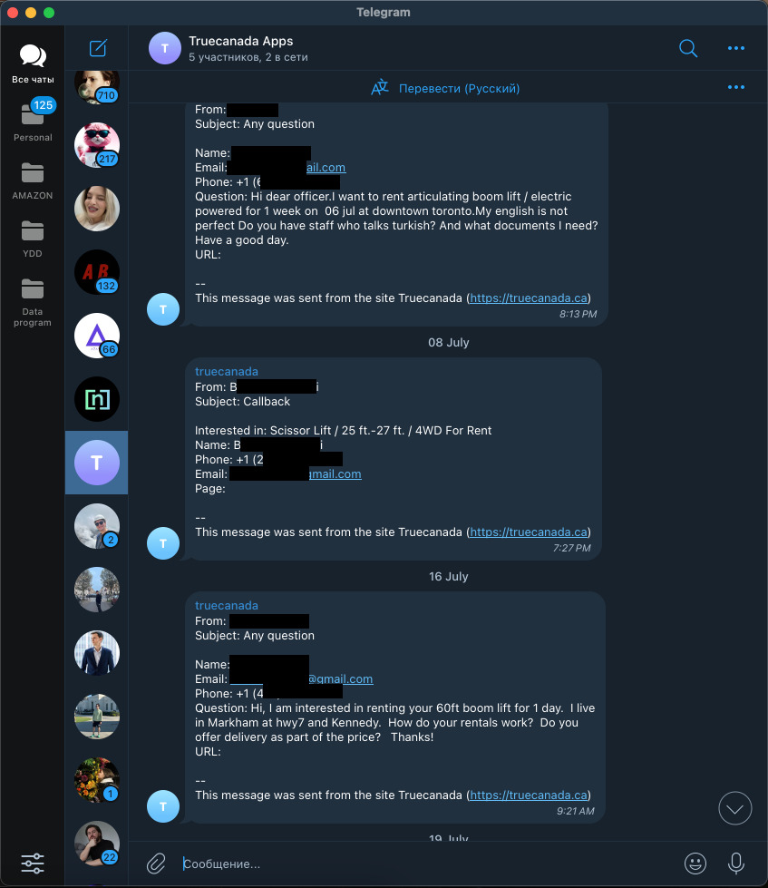 Additionally, I developed and integrated an automatic bot in Telegram Messenger to streamline communication between business representatives and customers, automating data collection and speeding up response times. The bot efficiently gathered inquiries and customer information, making interactions faster and more convenient. The bottom right picture represents a screenshot of the chatbot in action.